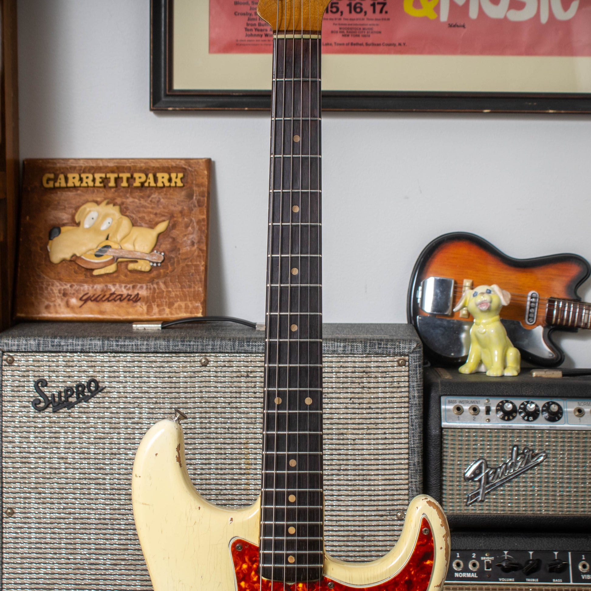 For your consideration, Garrett Park Guitars presents this 1963 Fender Stratocaster — a mojo-laden pre-CBS example with a rare factory refinish in custom-order Olympic White.