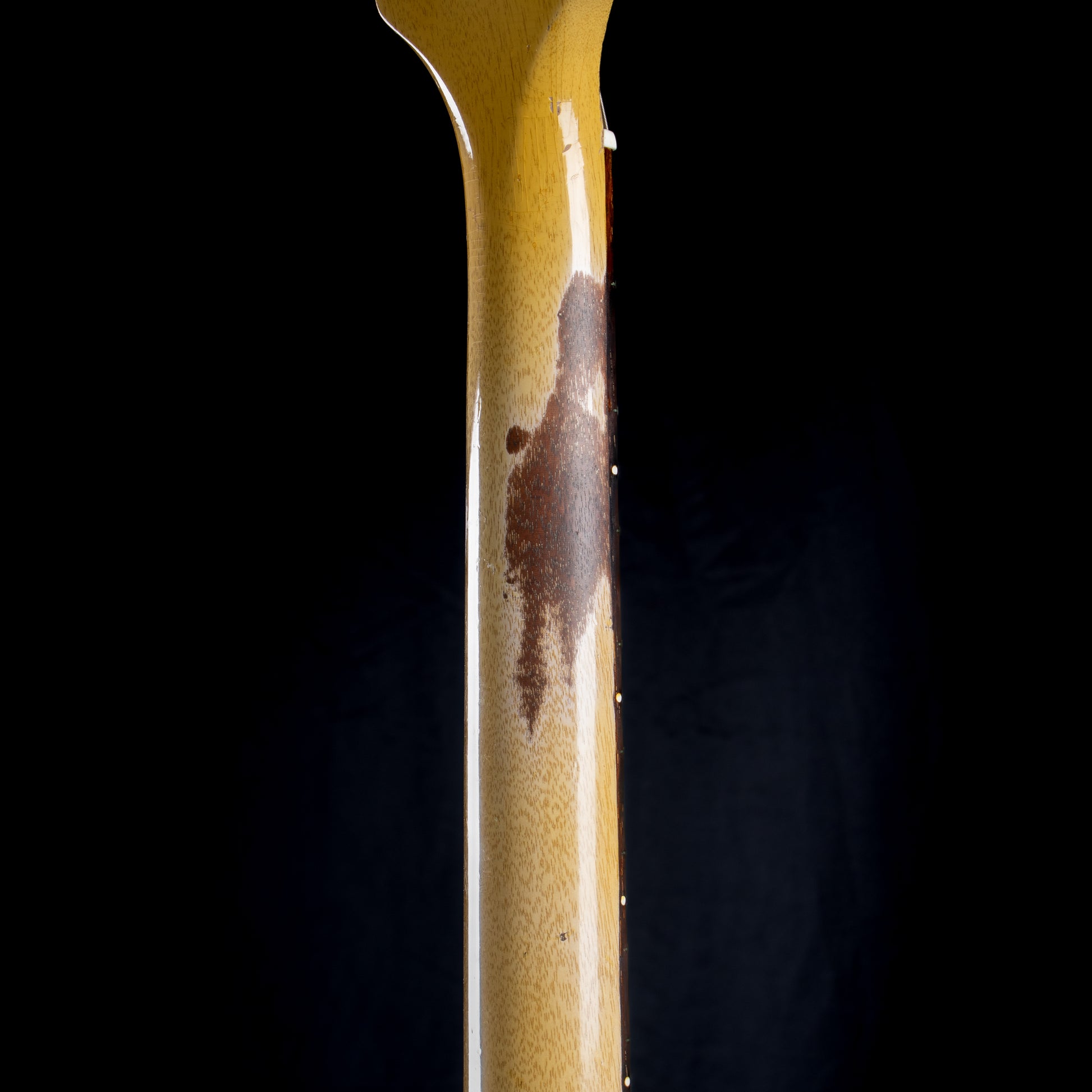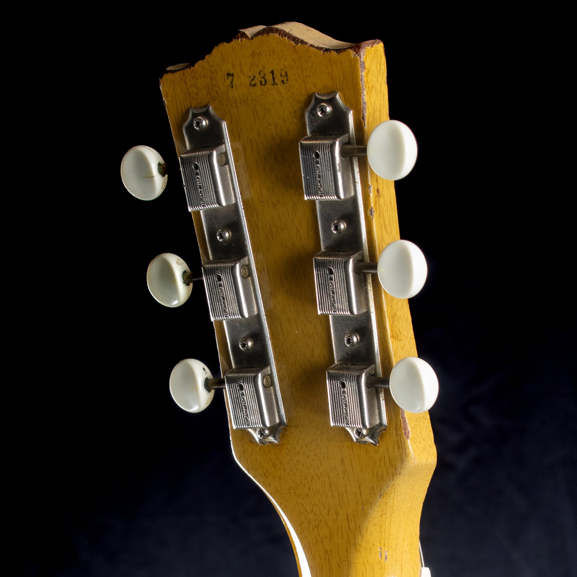 The mahogany neck features a classic late-’50s profile—substantial yet comfortable in the hand—offering excellent stability and an inviting, broken-in feel. The rosewood fingerboard remains clean and playable throughout, making this Junior as rewarding to play as it is to admire.