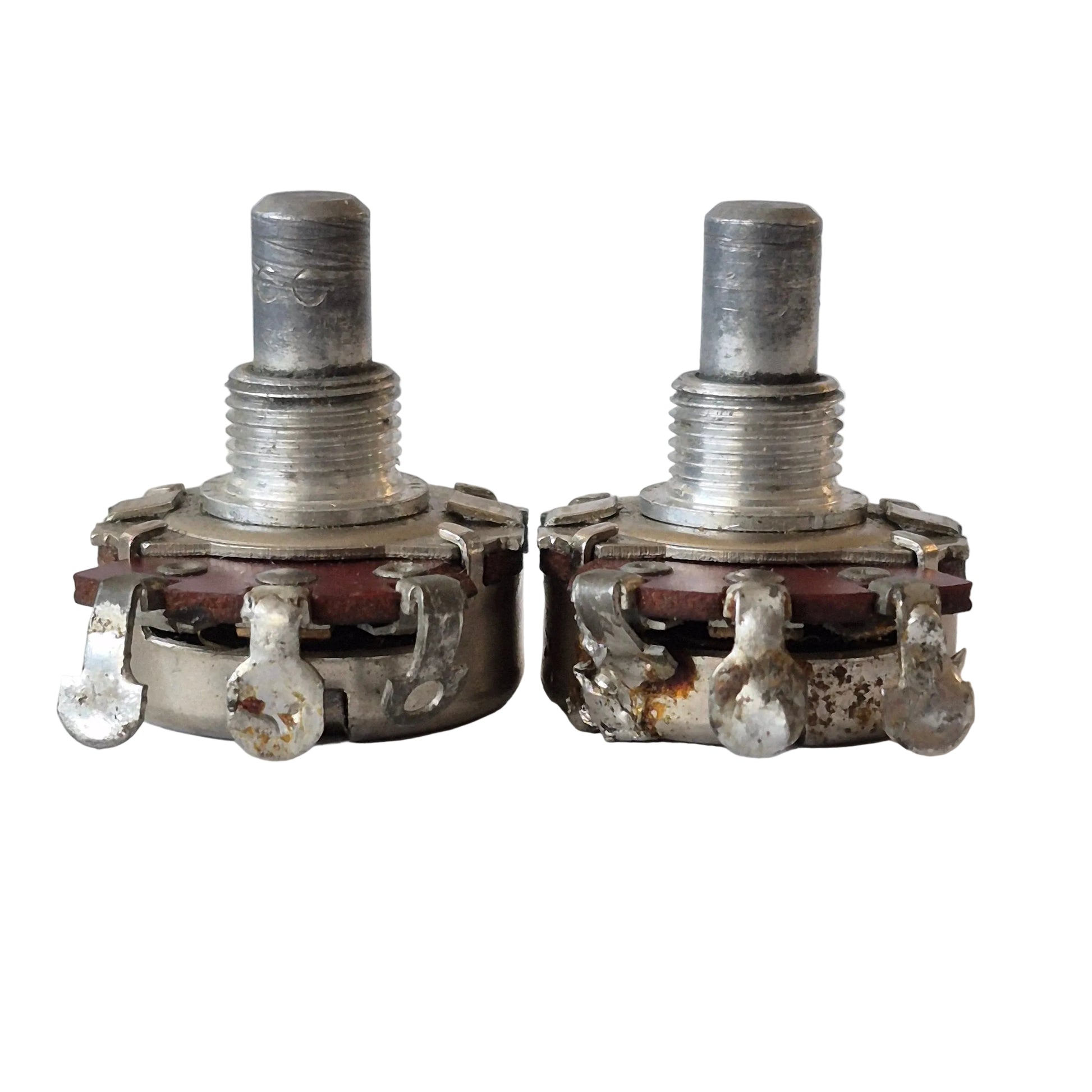 For your consideration, Garrett Park Guitars presents these 1963 Stackpole potentiometer, a matched pair of classic guitar components built for reliable performance and smooth tone control.