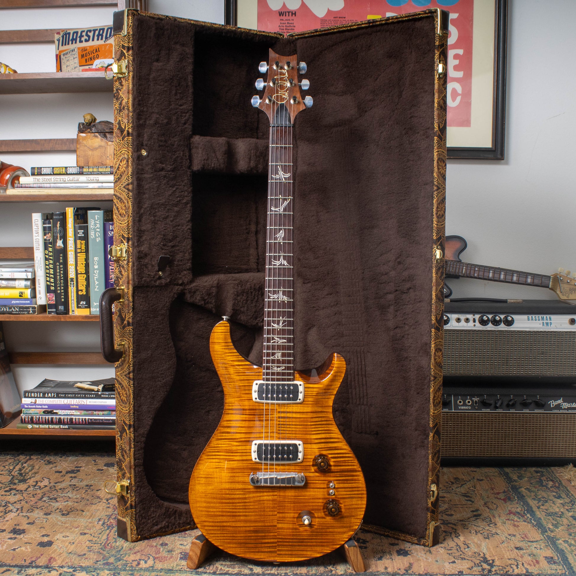 Finished in a high-gloss Yellow Tiger with a carved figured maple top over a select mahogany back, this Paul’s Guitar delivers the rich resonance, articulate response, and refined tone that define PRS instruments at the highest level. Its 25" scale, 10" radius rosewood fingerboard, and Pattern-style neck provide immediate playability and comfort, while the Narrow 408 pickups offer classic PRS tonal clarity and sustain.