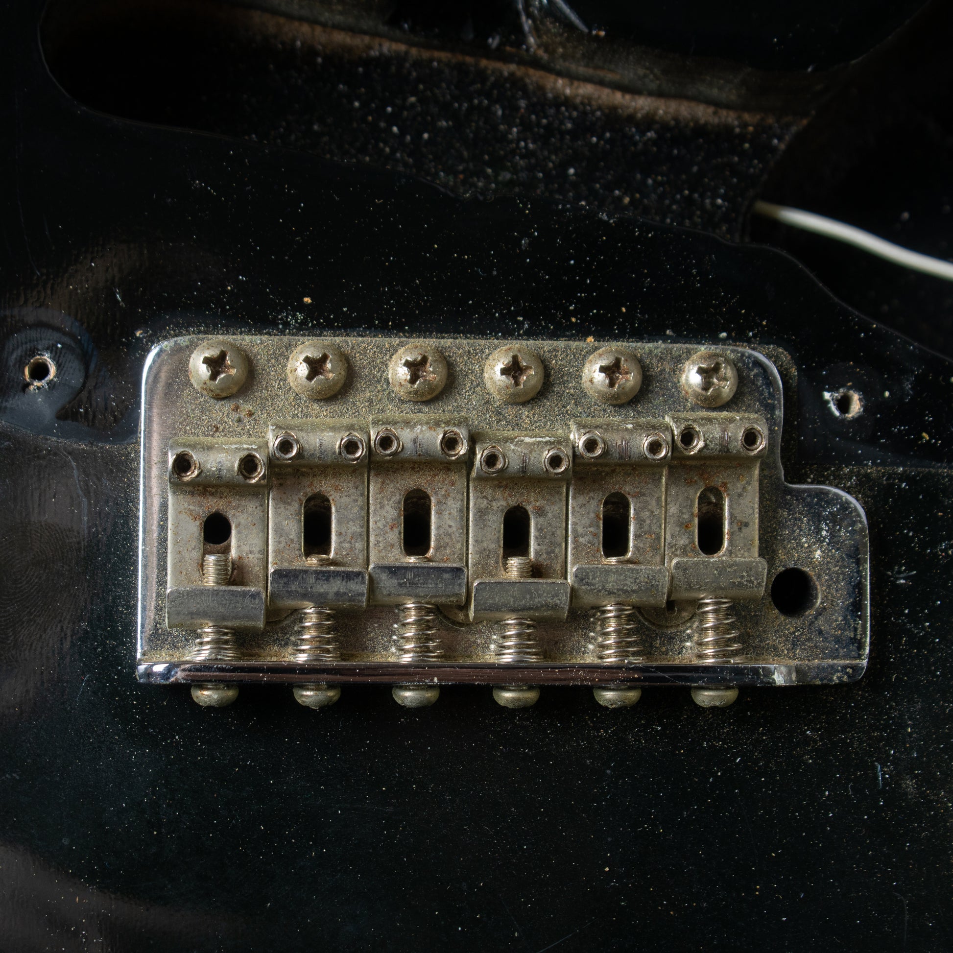 - Bridge / Saddles: Strat-style pressed steel saddles, trem block